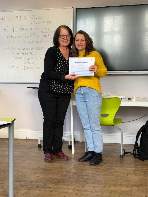 | |  W ramach realizowanego w naszej szkole projektu "Dobra edukacja to dobra przyszłość" (współfinansowanego ze środków Europejskiego Funduszu Społecznego Plus, Fundusze Europejskie dla Rozwoju Społecznego 2021-2027 w ramach projektu „Zagraniczna mobilność edukacyjna uczniów i kadry edukacji szkolnej”, realizowanego na zasadach programu Erasmus+) kolejna grupa nauczycieli wzięła udział w zagranicznych szkoleniach. W dniach 15-28 lutego 2026 trzy nauczycielki odbyły szkolenia w Dublinie, w Irlandii, gdzie podnosiły swoje umiejętności posługiwania się językiem angielskim (dwie osoby) oraz doskonaliły metody nauczania języka angielskiego (jedna osoba) w szkole Europass Teacher Academy. Dzięki udziałowi w szkoleniach nauczyciele podniosą swoje kompetencje, wzbogacą warsztat pracy, a zdobytą wiedzę i umiejętności wykorzystają podczas lekcji.