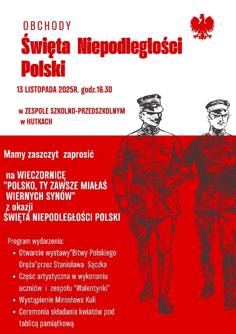 | | W dniu 27 czerwca 2025 roku w Zespole Szkolno –Przedszkolnym im. M. Kopernika w Hutkach odbyło się uroczyste zakończenie zajęć w roku szkolnego2024/2025. Uroczystość zaszczycili swą obecnością Pani Jadwiga Janik- skarbnik Gminy Konopiska, Pan Krzysztof Bączyński – radny Gminy Konopiska i sołtys wsi Hutki i Ksiądz Sebastian Ciastek – proboszcz parafii N.S.P.J w Rększowicach . Uroczystość rozpoczęła się od wprowadzenia sztandaru szkoły i odśpiewania Hymnu. Następnie Pani Dyrektor Tamara Gwóźdź rozdała świadectwa i nagrody najlepszym uczniom naszej szkoły. Najważniejszą nagrodę w tym roku szkolnym, za postępy i promocję ZSP w Hutkach, otrzymała Amelia Zaręba –uczennica VII klasy. Słowa podziękowania zostały skierowane do władz samorządu Gminy Konopiska , rodziców zaangażowanym w życie i pracę szkoły. wakacje. W części oficjalnej Pani Dyrektor w imieniu wszystkich pracowników , dzieci , uczniów oraz rodziców Zespołu podziękowała Pani Beacie Huras za wzorową wieloletnią pracę na stanowisku głównej księgowej Zespołu życząc kolejnych sukcesów na nowym stanowisku . Następnym punktem programu było wykonanie Poloneza przez uczniów VIII klasy , przy wsparciu młodszych koleżanek i kolegów . Przepiękny układ choreograficzny przygotowała z młodzieżą pani Maria Wołczyk. Taniec wzbudził wśród widowni ogromne emocje, szczególnie rodzicom absolwentów zakręciła się łezka w oku. W dalszej części zgromadzeni na sali zobaczyli przedstawienie artystyczne pt. „Kiedy wydaje się, że wszystko się skończyło, wtedy dopiero wszystko się zaczyna.” w wykonaniu uczniów opuszczający szkołę oraz uczniów trzeciej klasy-kończącej I etap edukacji pod opieką wychowawczyń pani Magdaleny wolskiej –Majchrzak i Pani Iwony Maj. Motywem przewodnim programu był ,,Literacko- muzyczny koncert życzeń”, którego głównym celem było złożenie podziękowań wszystkim , którzy przyczynili się do rozwoju osobistego , a w przypadku ósmej klasy do ukończenia przez nich szkoły. Humorystyczne życzenia, które stanowiły przeróbki znanych tekstów literackich takich autorów jak : M. Rej J. Kochanowski, , A. Mickiewicz wzbogacone o muzyczne dedykacje wzbudziły na sali szczery śmiech, co świadczyło o celnym doborze materiału.Po czym uczniowie VII klasy pożegnali „Echem” swoich starszych kolegów życząc im samych sukcesów w kolejnym etapie życia. Na tym uroczystość się zakończyła i wszyscy udali się na zasłużone wakacje